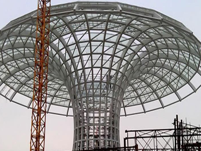 二、球形网架结构因其结构新颖,受力合理,自重轻、用钢量低等优点。如大型体育场馆球形淮安螺栓球网架、公共场馆球形网架、电厂淮安螺栓球网架、水泥工业球形网架、仓储物流球形网架、淮安干煤棚工业球形网架、淮安收费站淮安加油站球形网架、展览中心、影剧院、商场、航站楼、候车厅、工厂淮安车间、仓库、电视塔等球形螺栓球节点网架。国内球形网架结构主要分为:淮安焊接球节点网架及螺栓球节点网架两种。螺栓球节点网架其构件工厂内加工量较大,现场安装便捷,适用于现场工期紧,淮安施工条件、用电量受制约,网架形状复杂、淮安杆件定位困难的异形结构。螺栓球节点球形网架系统基本由淮安杆件、螺栓球、支撑支座等组成。按照节点形式可分为交叉淮安桁架体系、四角锥体系、三角锥体系等。支撑方式多为固定支座支撑。对于大面积、大跨度及有特殊受力或伸缩要求的网架结构可采用橡胶支座、滑移支座、球铰支座等支撑形式,以满足结构自身的受力稳定、均衡,便于内力释放等设计要求。